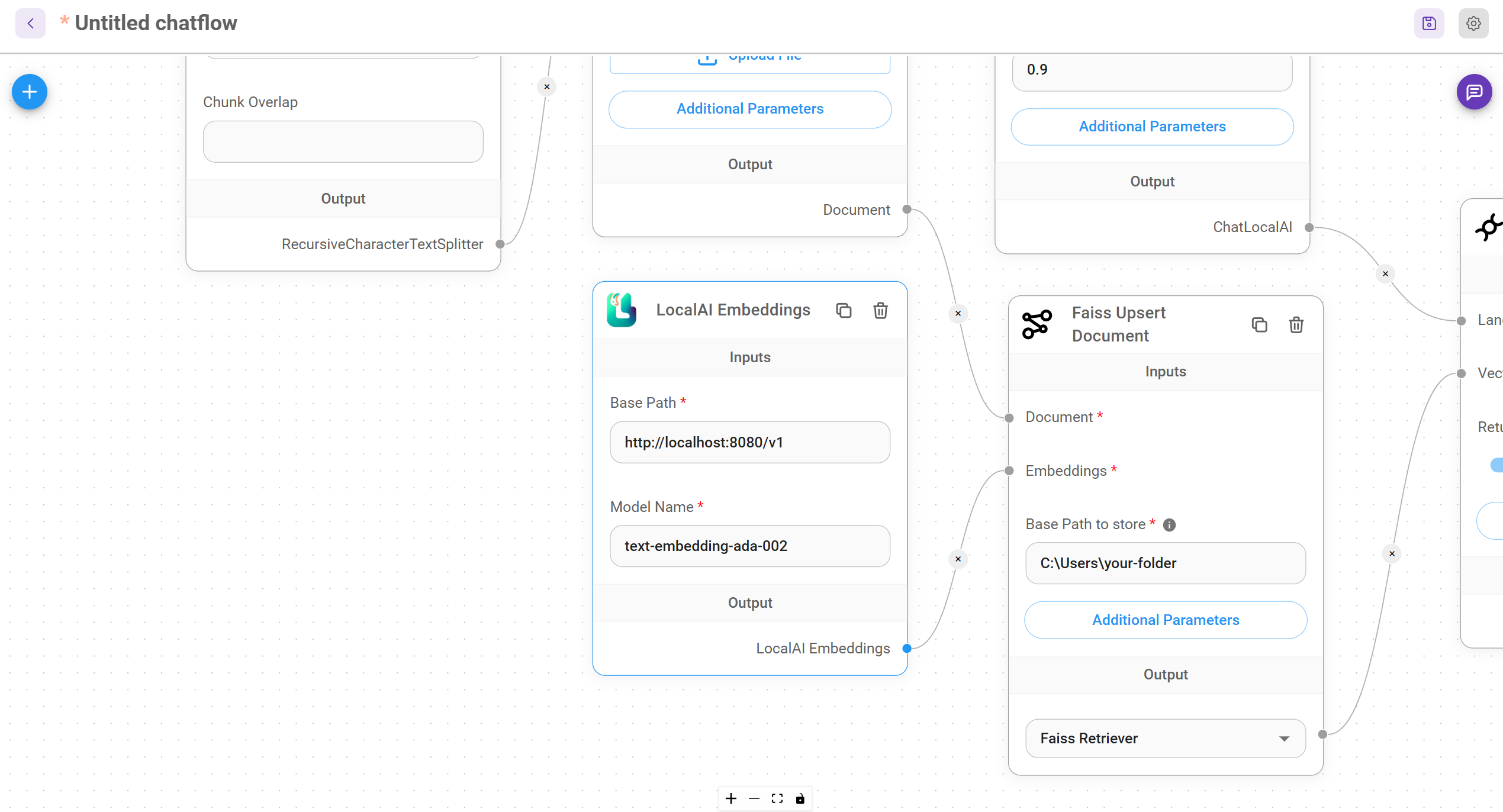 Drag and drop a new LocalAIEmbeddings component to canvas: