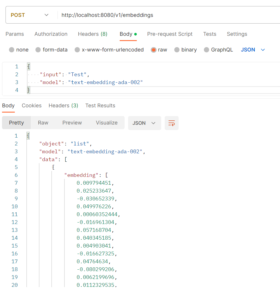 curl http://localhost:8080/v1/embeddings -H "Content-Type: application/json" -d '{
