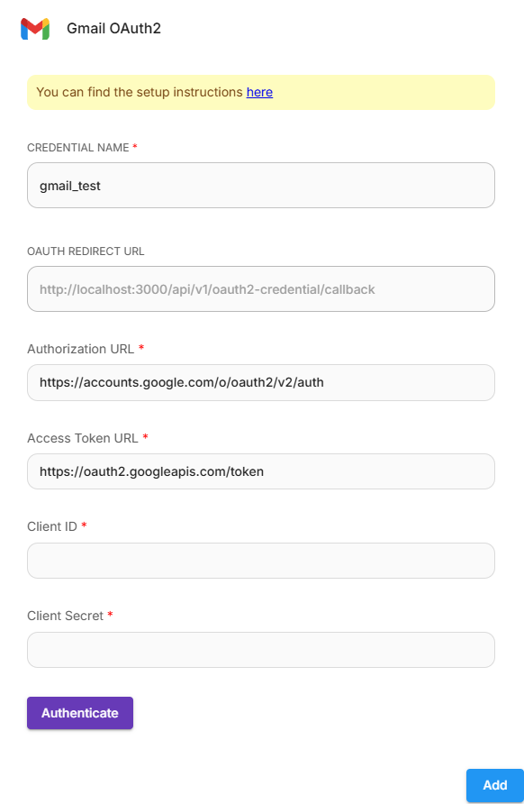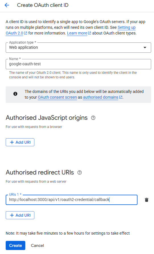 - Under Authorized redirect URIs, click + ADD URI and paste the OAuth redirect URL copied earlier.