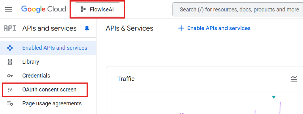 - Navigate to Google Cloud Console > APIs & Services, and select the project you want to use from the dropdown at the top left (or create a new project and select it).
