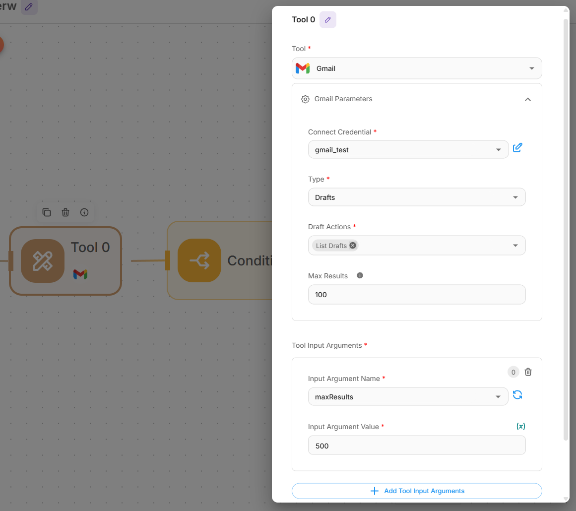 It can also be used as a Tool Node in a determined workflow scenario. For example, retrieving a list of draft messages before proceeding to the next step.