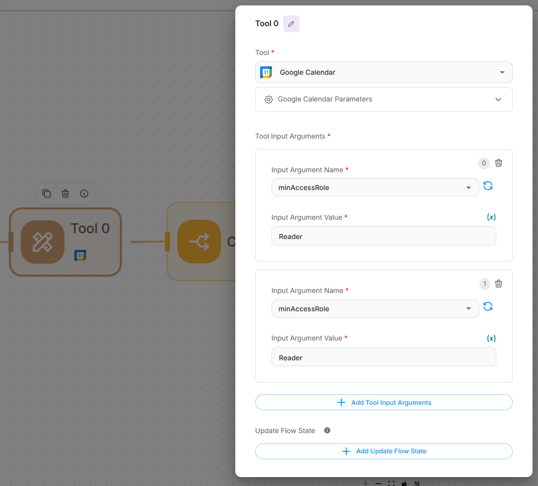 In this mode, Tool Input Arguments must be explicitly defined and filled with values.