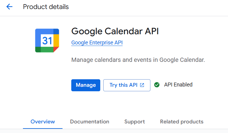 - Search for and enable the Google Calendar API.