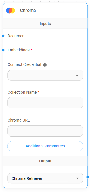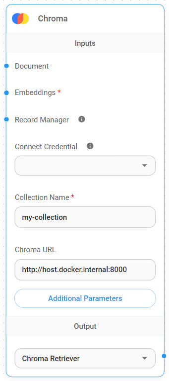 | Chroma URL | Specify the URL of your chroma instance | http://localhost:8000 | https://api.trychroma.com:8000 |