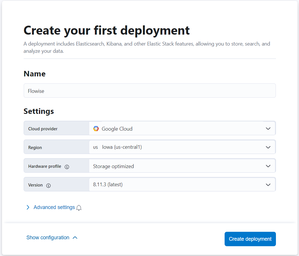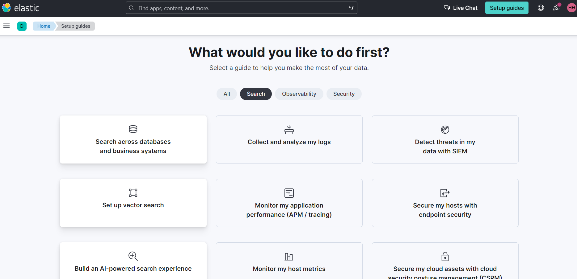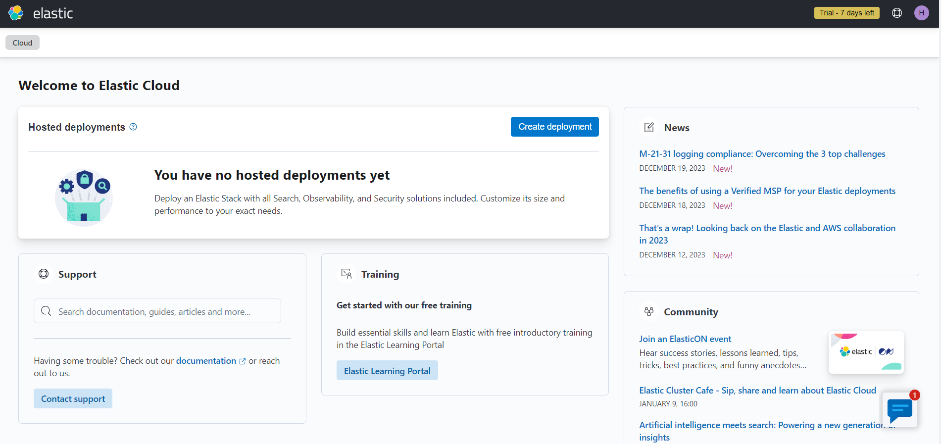 You can use the official Docker image to get started, or you can use Elastic Cloud, Elastic's official cloud service. In this guide, we will be using cloud version.