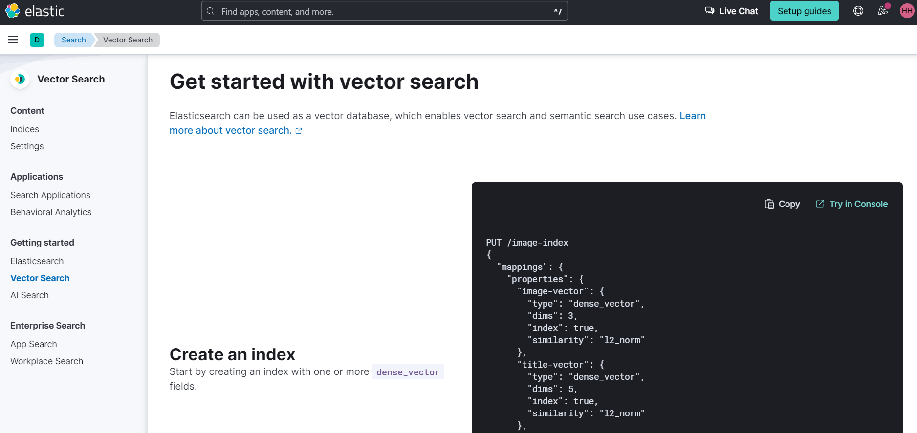After deployment is finished, you should be able to see the setup guides as shown below. Click the Set up vector search option.