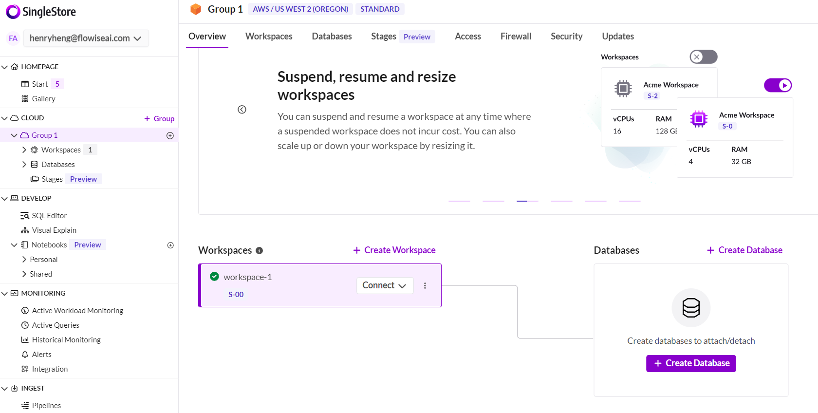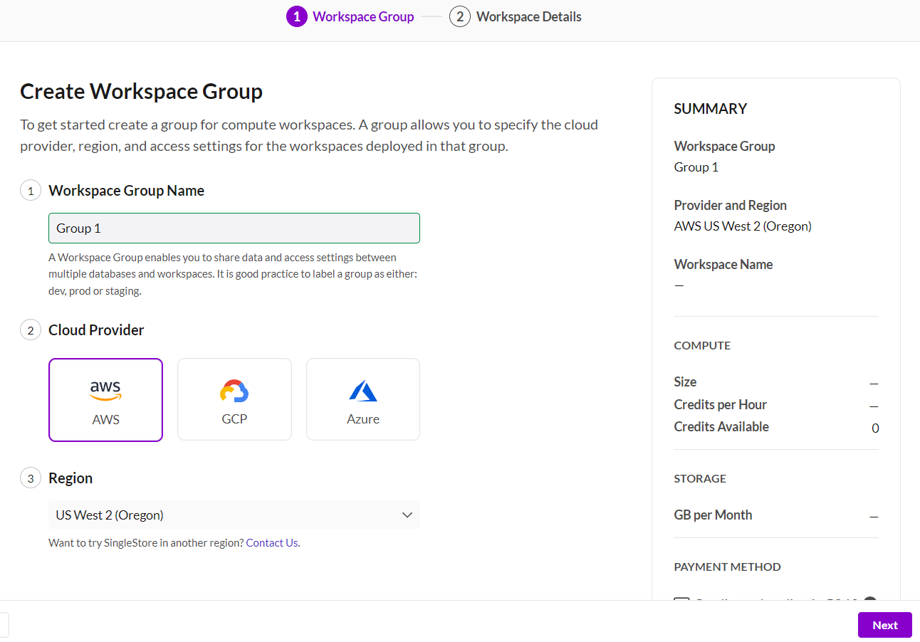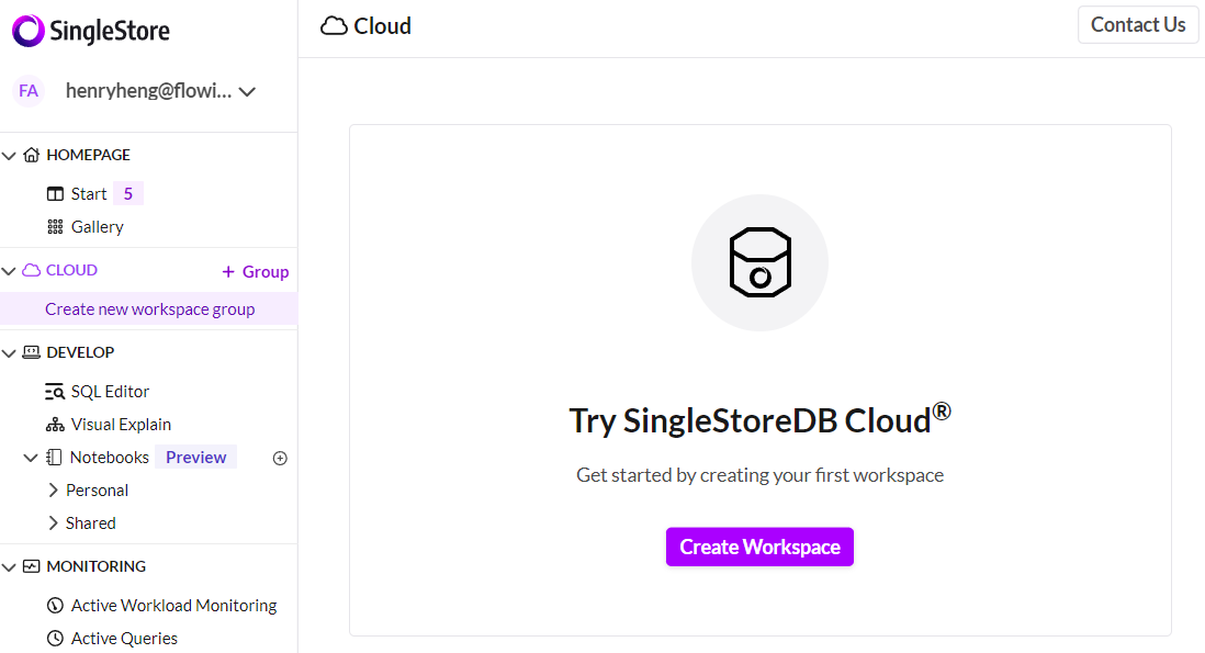 Login to portal. On the left side panel, click CLOUD -> Create new workspace group. Then click Create Workspace button.