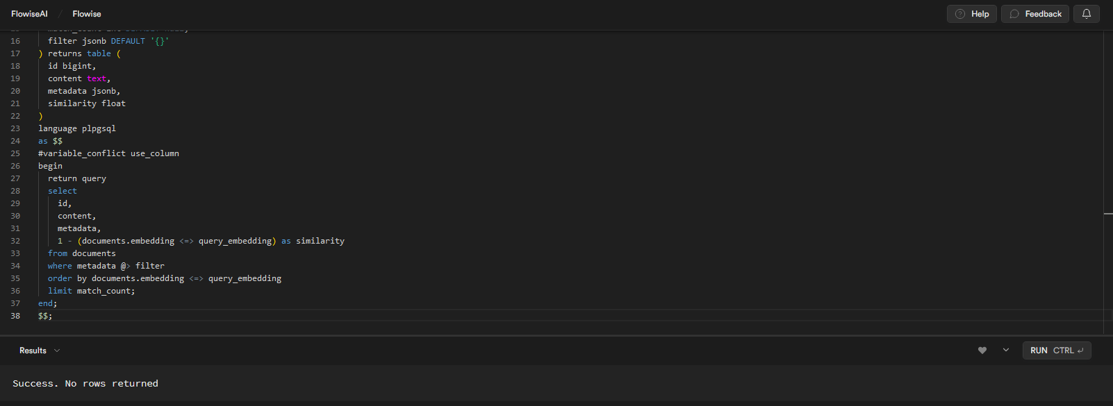 Ctrl + Enteror click RUN. Take note of the table name and function name.