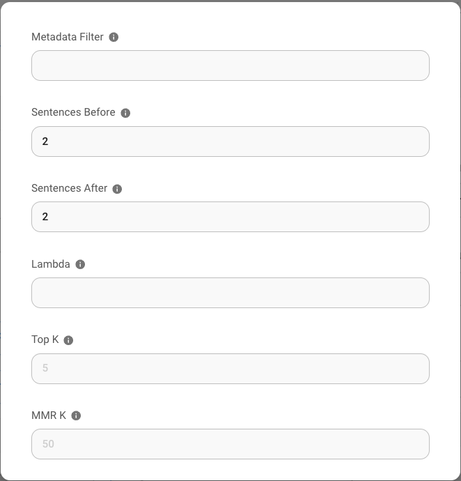 - MMR-K: number of results to use for MMR (max marginal relvance)
