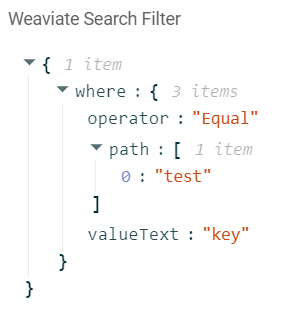 Weaviate supports following syntax when it comes to filtering: