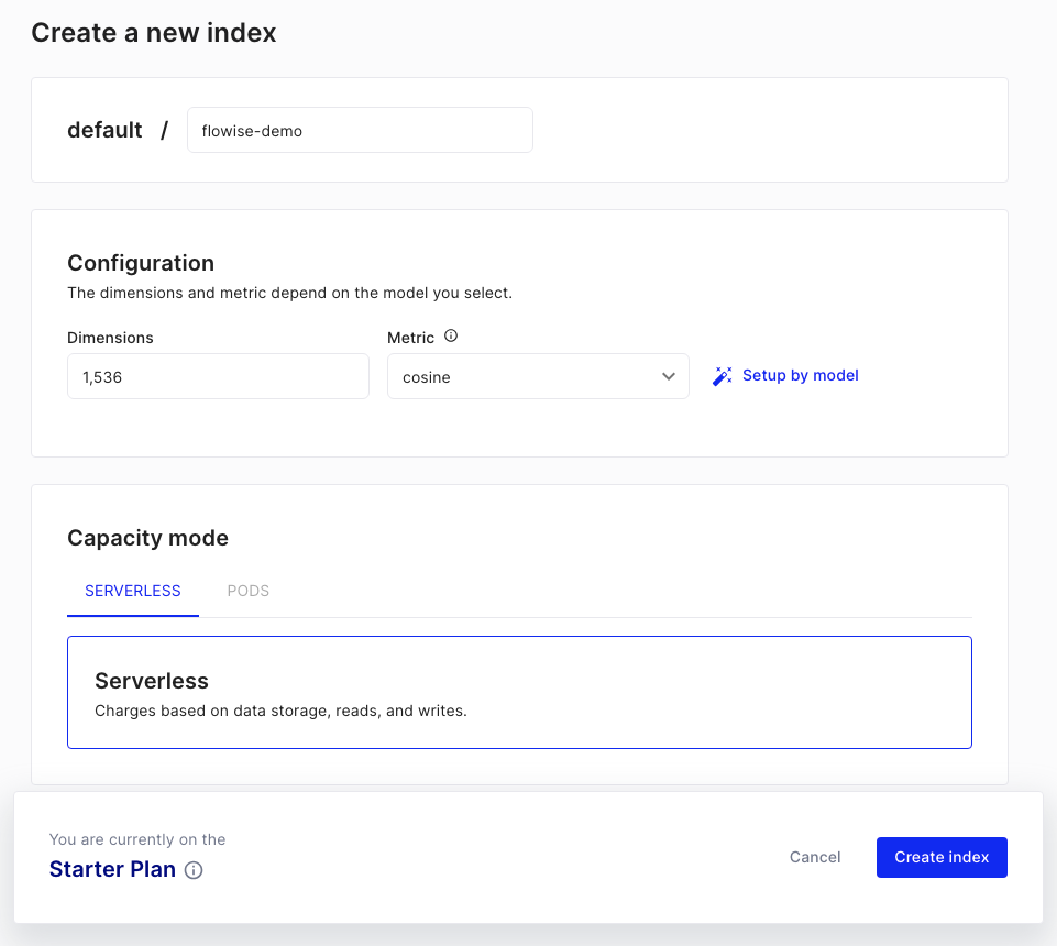 - Dimensions, size of the vectors to be inserted in the index. (e.g. 1536)