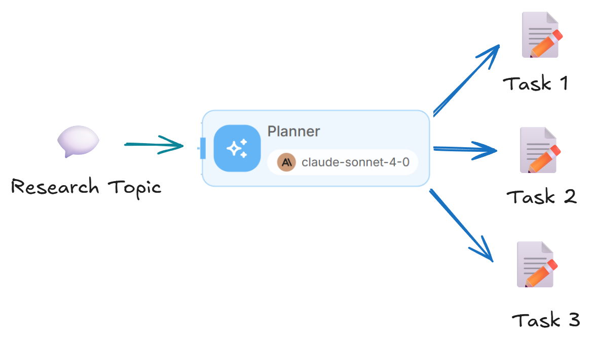 - 🧠 Planner Agent - analyzes the research query and generates a list of specialized research tasks