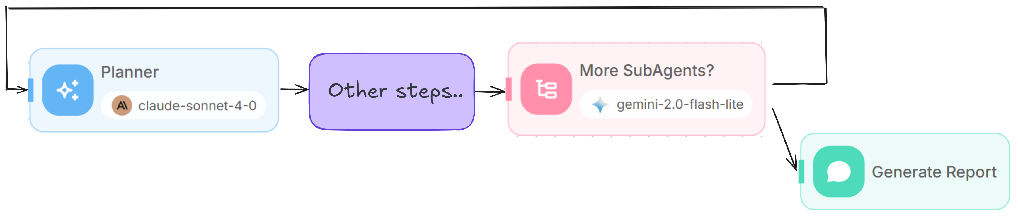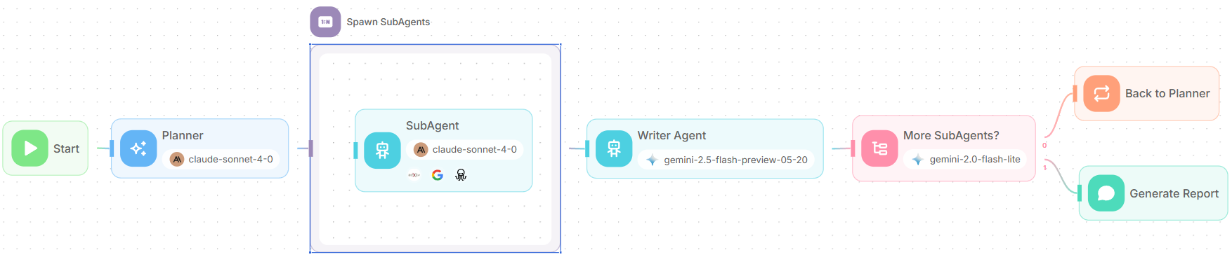 - 🔄 Loop back to Planner Agent to generate more subagents