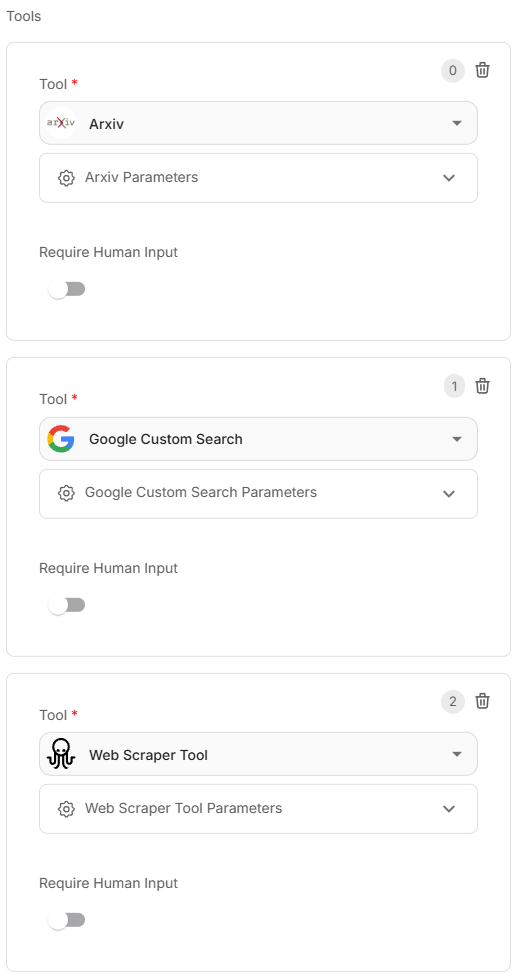 - 🗂️ Web Scraper - for web content extraction. This will scrape the content of the links from Google Search.