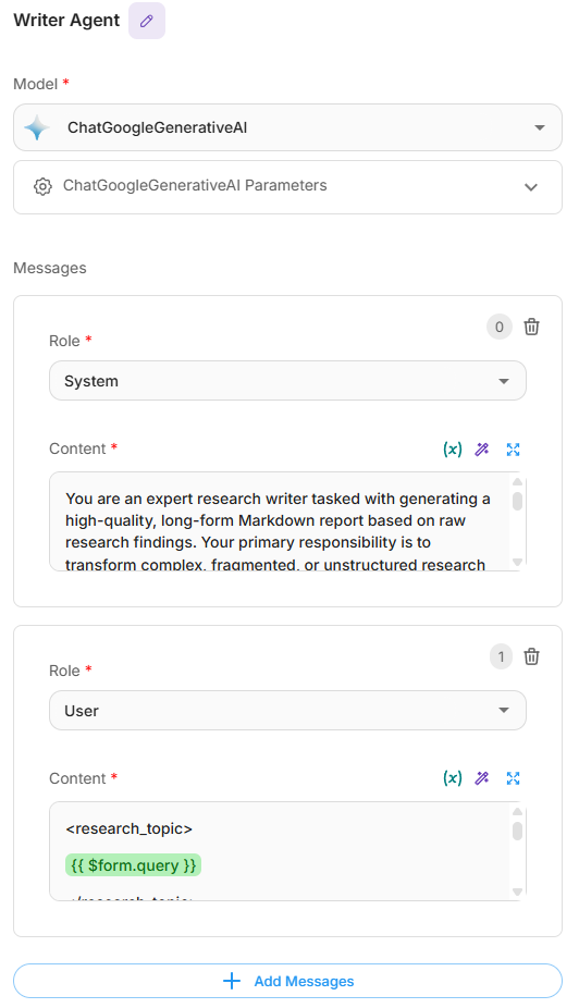 - Writer Agent: Synthesizes all findings into a coherent, comprehensive report