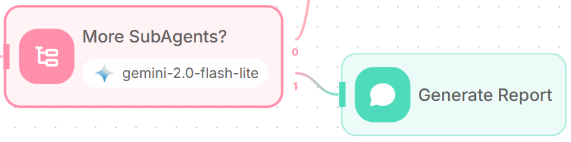 - ⇄ Condition Agent - determines if additional research is needed or if the findings are sufficient