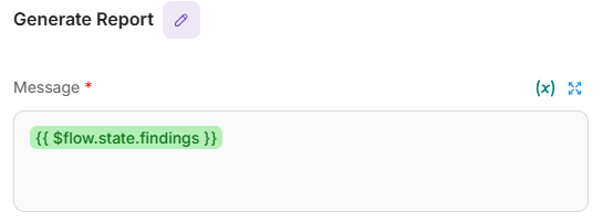 {{ $flow.state.subagents }}. For each item in the array, a subagent will be spawned to carry out the research task. Example: