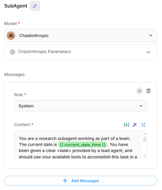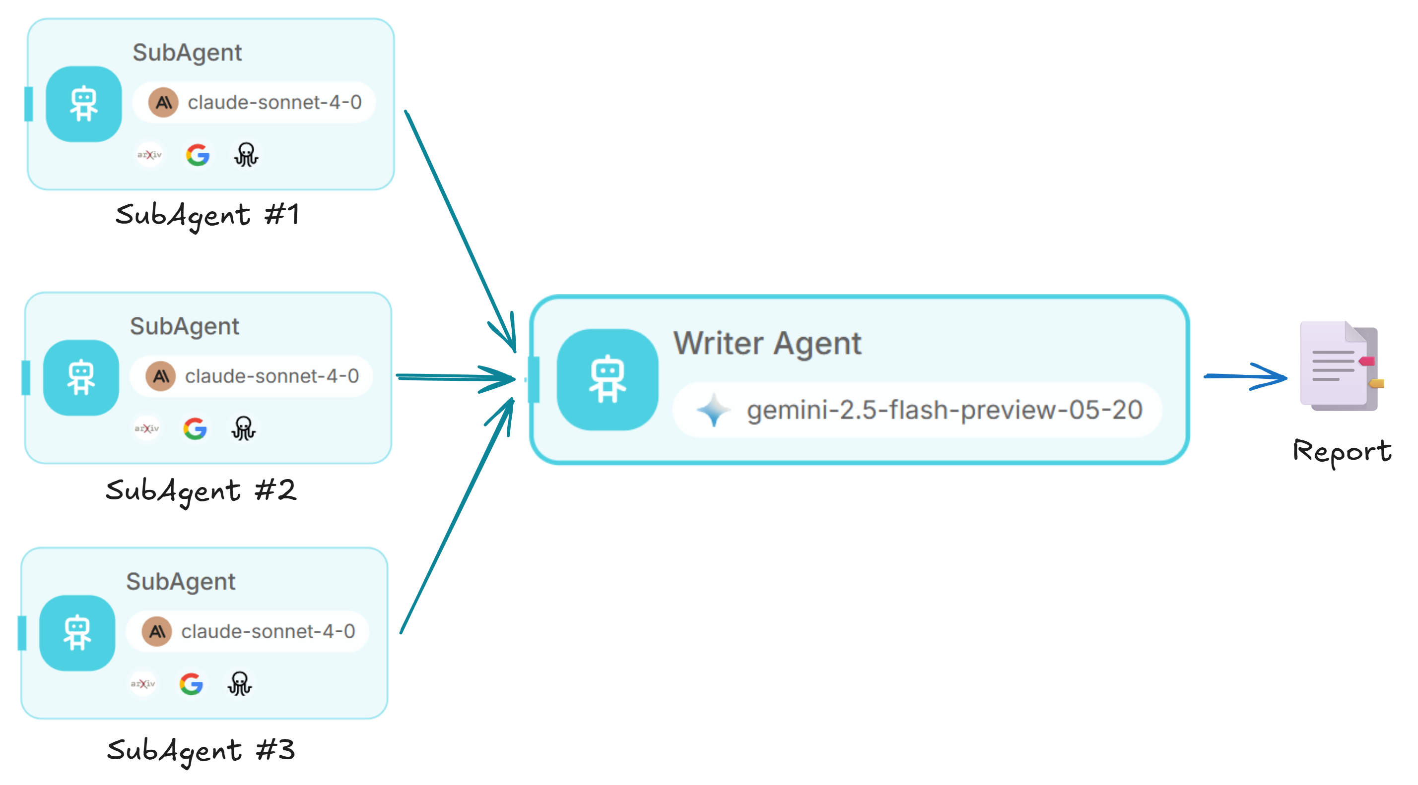 - Research SubAgents: Individual agents that conduct focused research using web search and other tools