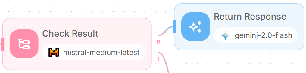For successful results (output 0 from Condition Agent), add an LLM node.