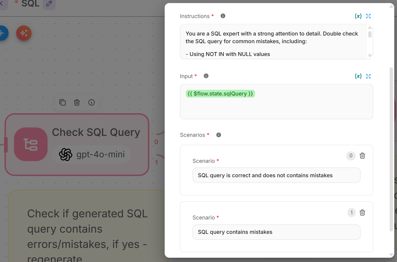 - Loop Back To: "Generate SQL Query"