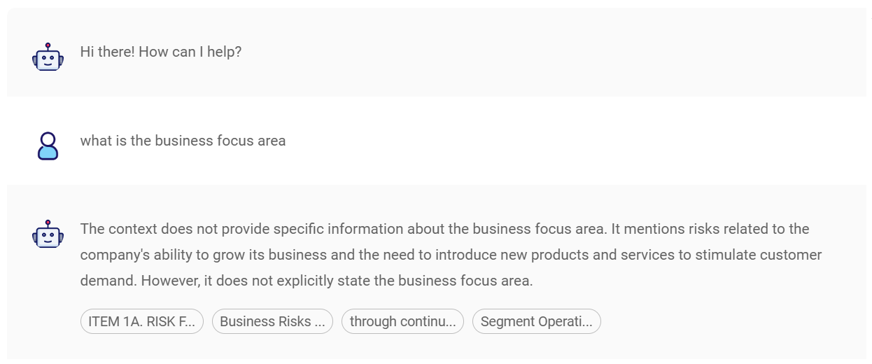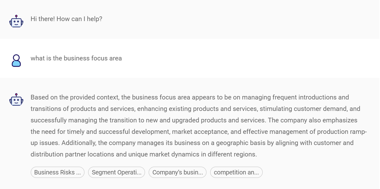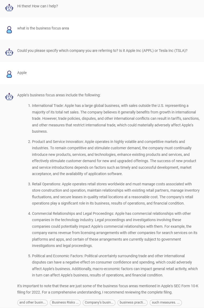 - Let's ask the same question again, we should now see all context retrieved are indeed from APPLE FORM-10K: