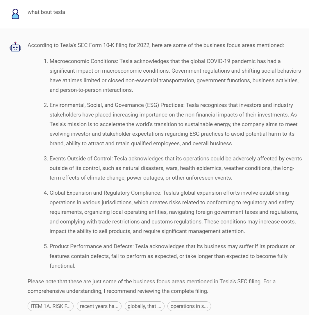- However, the context retrieved used to return the answer is a mix of both APPLE and TESLA documents. As you can see from the Source Documents: