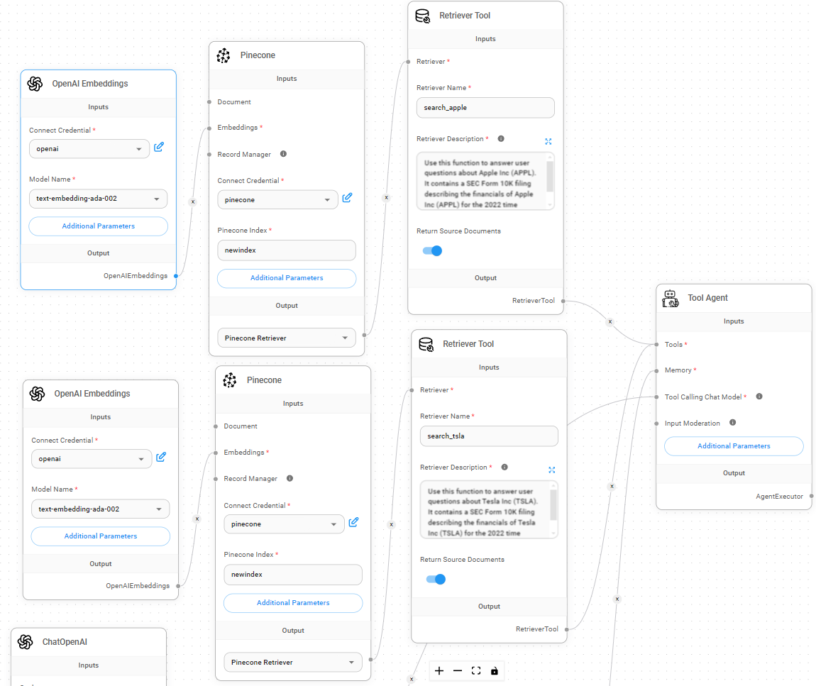 With the Tool Agent approach, user has to create multiple retriever tools to retrieve documents from different sources. This could be a problem if there is a large number of document sources with different metadata. Using the example above with only Apple and Tesla, we could potentially expand to other companies such as Disney, Amazon, etc. It would be a tedious task to create one retrever tool for each company.