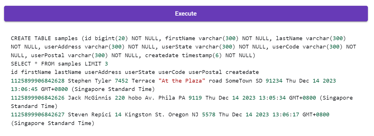 const sqlSelectTableQuery = `SELECT * FROM samples LIMIT 3`;