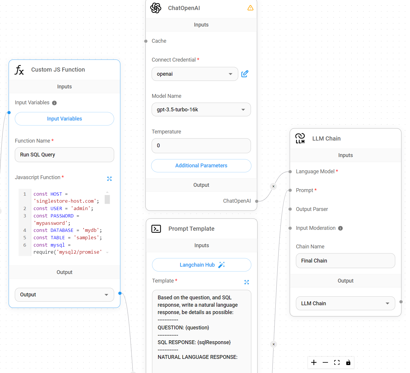 In this example, we are going to create a QnA chatbot that can interact with a SQL database stored in SingleStore