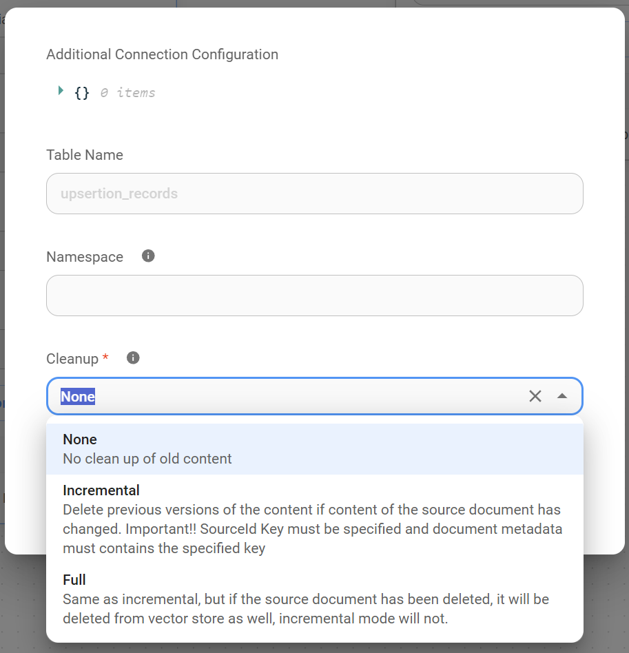 - Finally, the Vector Store node acts as the bridge between CiniterFlow and our database. It sends our embeddings, along with any associated metadata, to the designated Vector Store index.