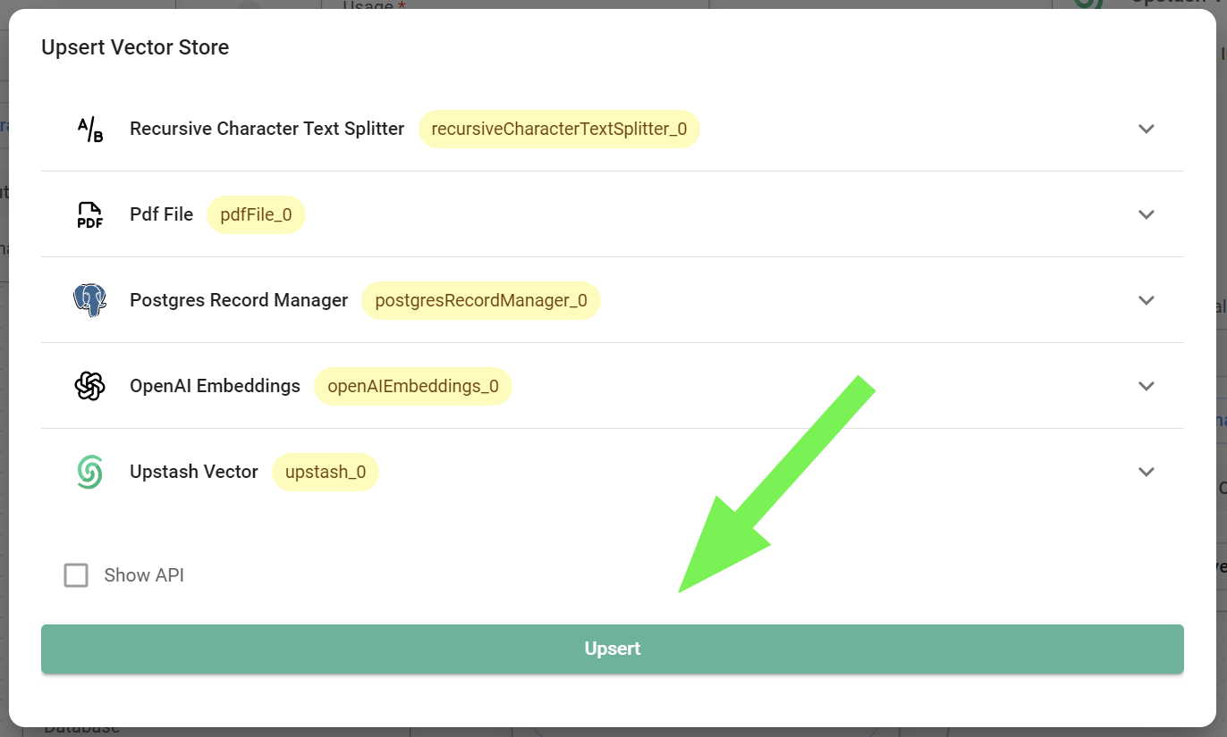In other words, in CiniterFlow you can upsert data without a full RAG setup, and you can run your RAG without the specific nodes used in the upsert process, meaning that although a well-populated vector store is crucial for RAG to function, the actual retrieval and generation processes don't require continuous upserting.