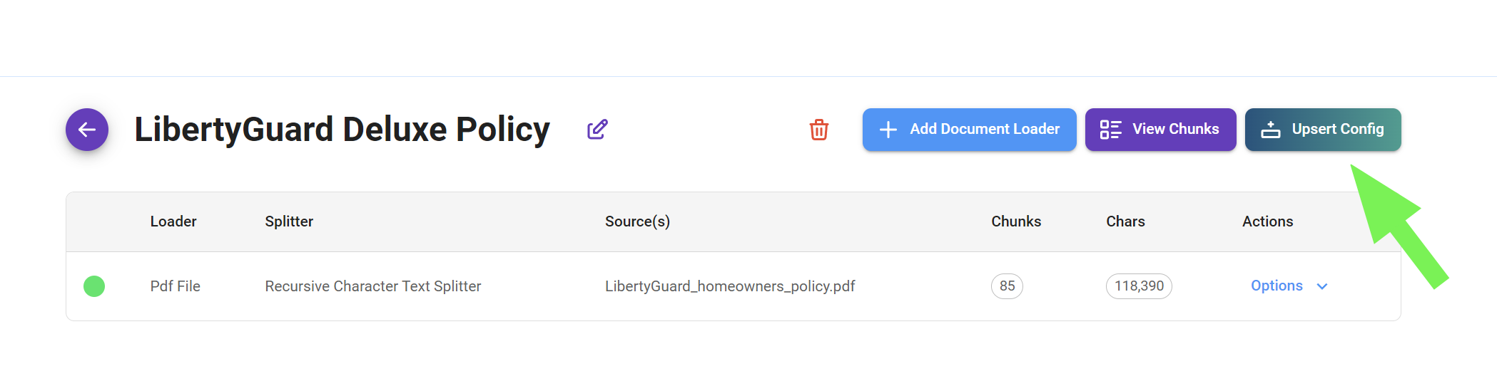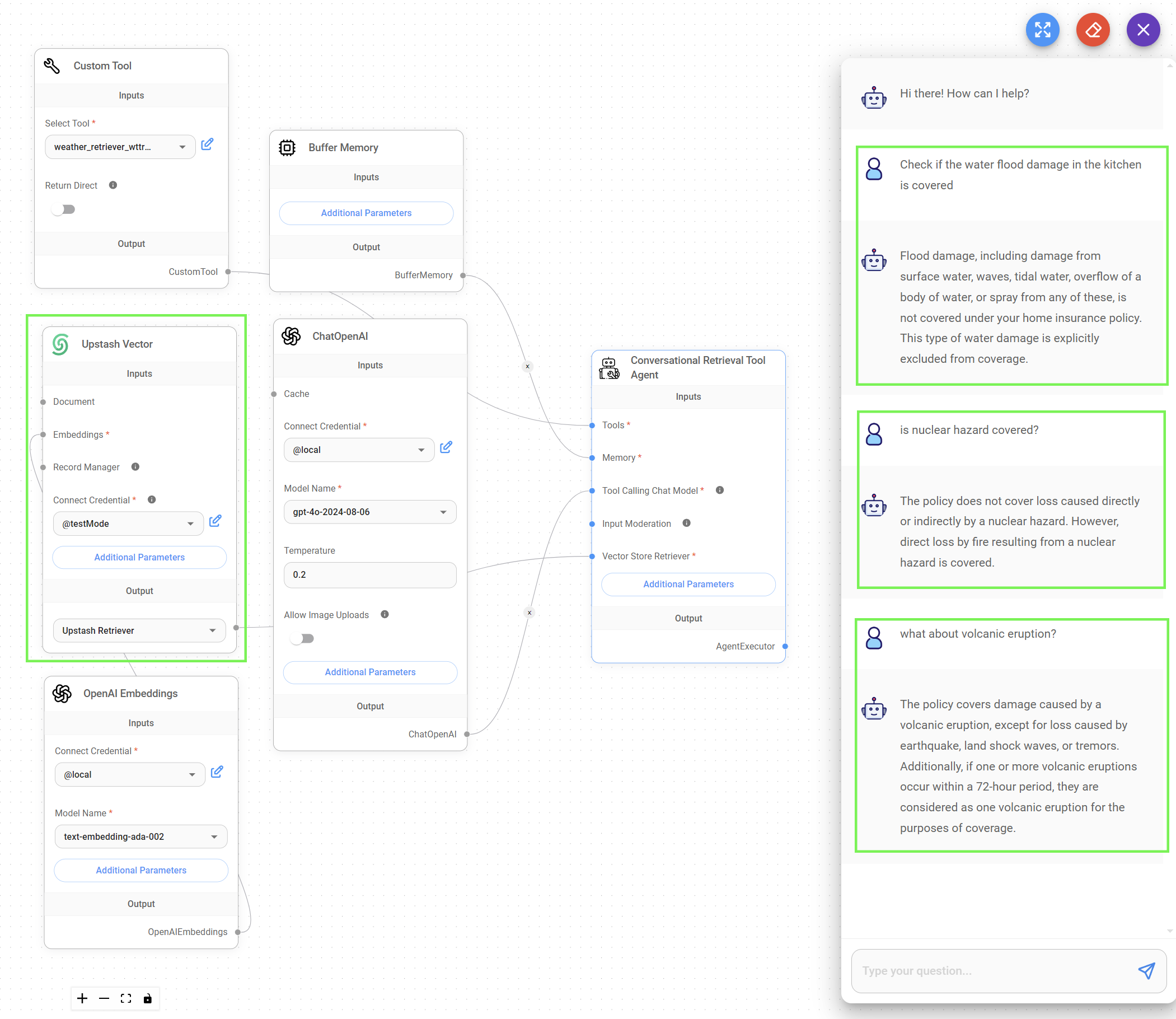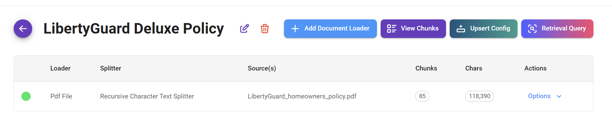 We started by creating a Document Store to organize the LibertyGuard Deluxe Homeowners Policy data. This data was then prepared by uploading, chunking, processing, and upserting it, making it ready for our RAG system.