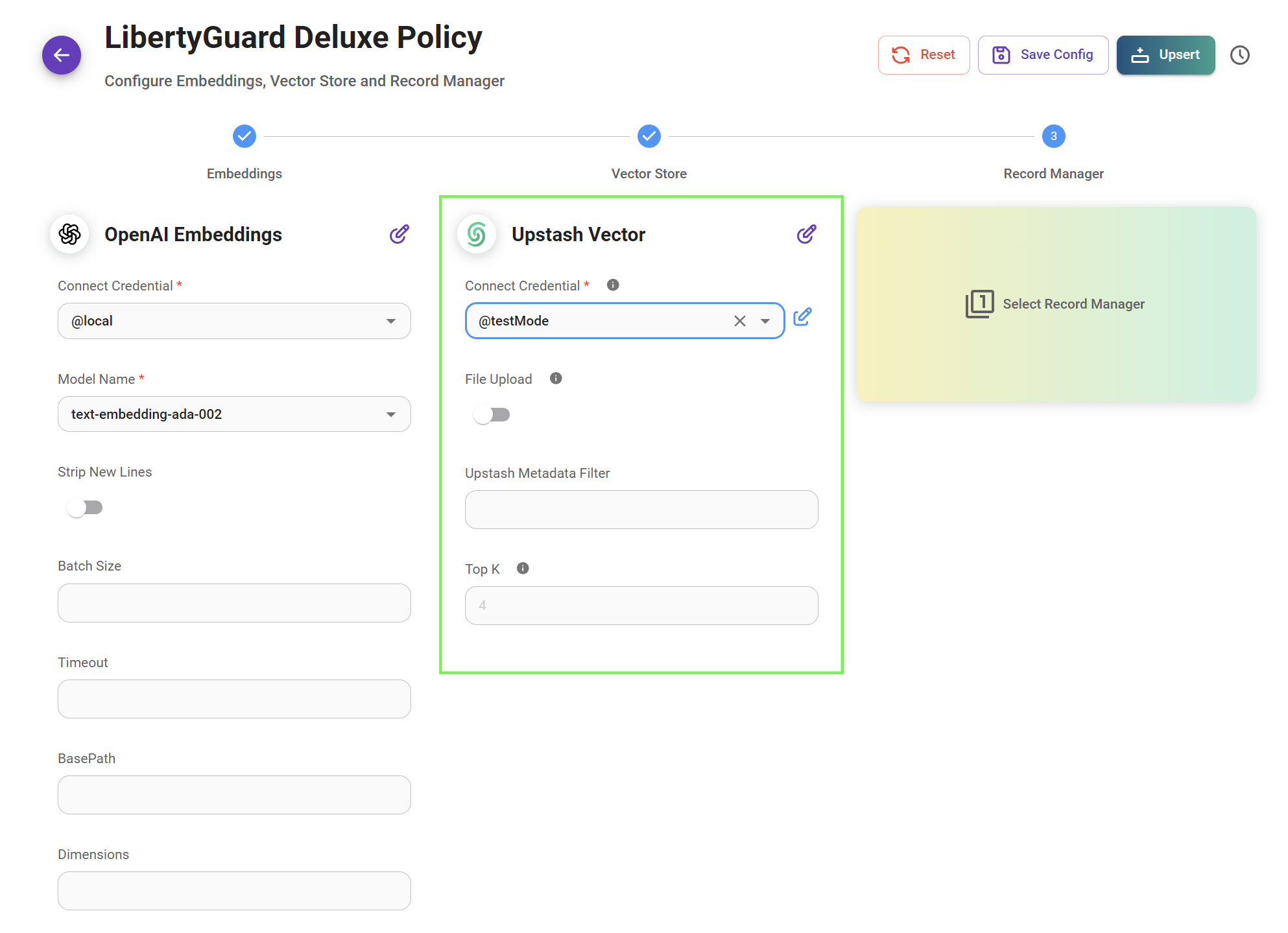 Record Manager is an optional but incredibly useful addition to our upserting flow. It allows us to maintain records of all the chunks that have been upserted to our Vector Store, enabling us to efficiently add or delete chunks as needed.