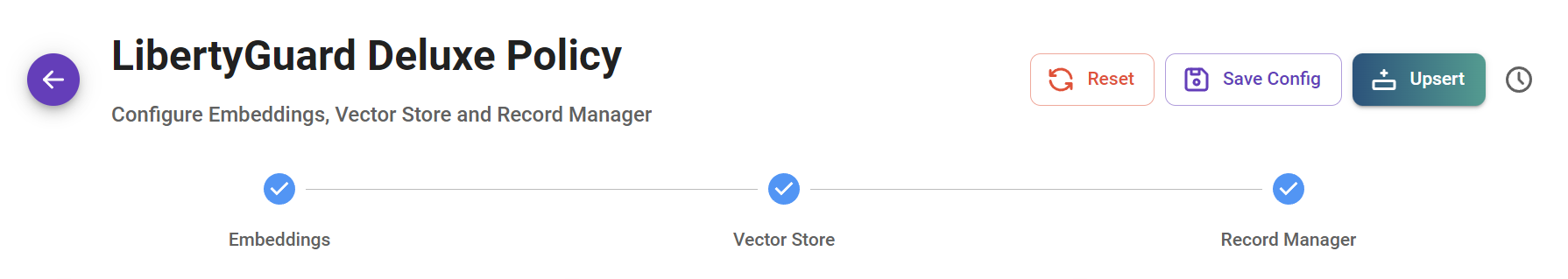 To begin the upsert process and transfer your data to the Vector Store, click the "Upsert" button.