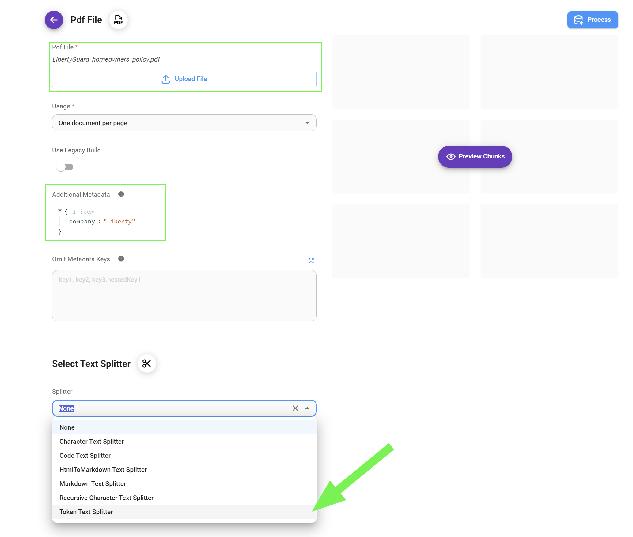 It's important to experiment with different Text Splitters, Chunk Sizes, and Overlap values to find the optimal configuration for your specific dataset. This preview allows you to refine the chunking process and ensure that the resulting chunks are suitable for your RAG system.