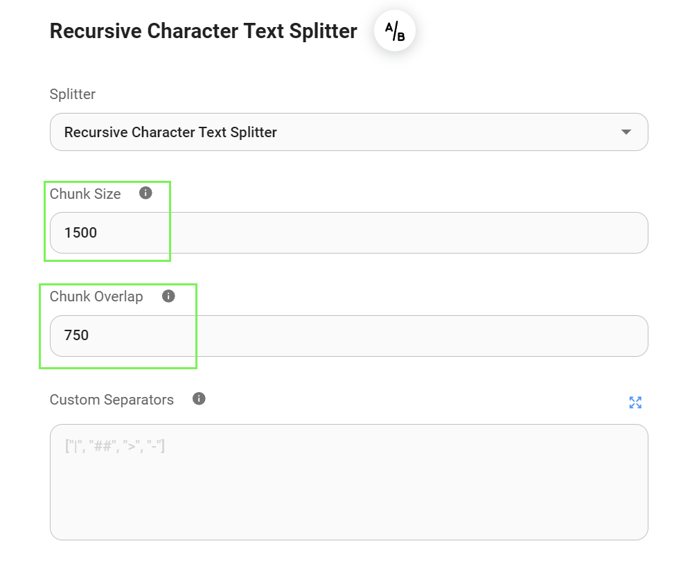 - Chunk Overlap: The number of characters or tokens to overlap between consecutive chunks, useful for maintaining contextual flow across chunks.