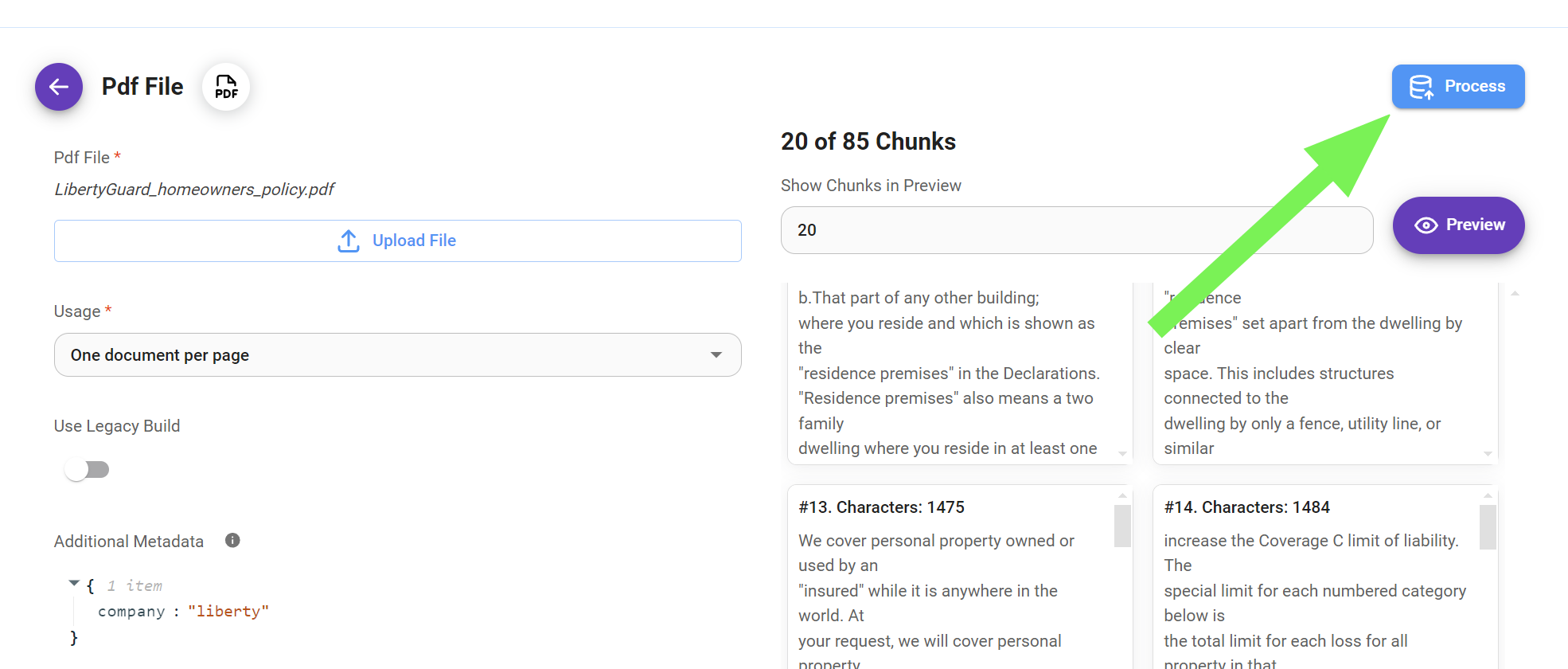 Once you are satisfied with the chunking process, it's time to process your data.