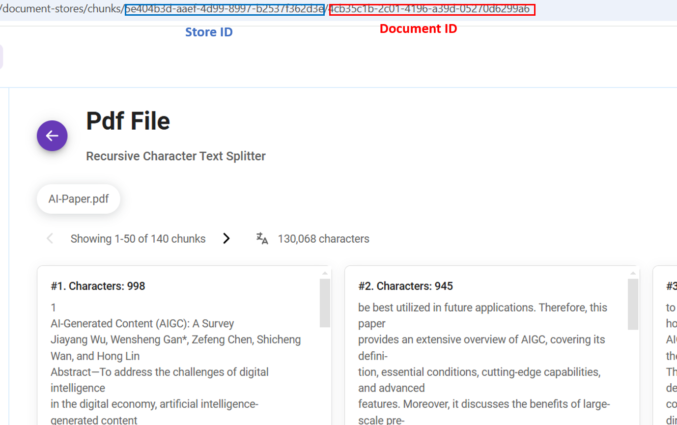 Q: Where to find Document Store ID and Document Loader ID?