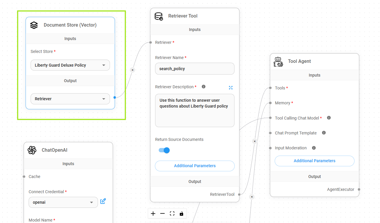 We started by creating a Document Store to organize the LibertyGuard Deluxe Homeowners Policy data. This data was then prepared by uploading, chunking, processing, and upserting it, making it ready for our RAG system.