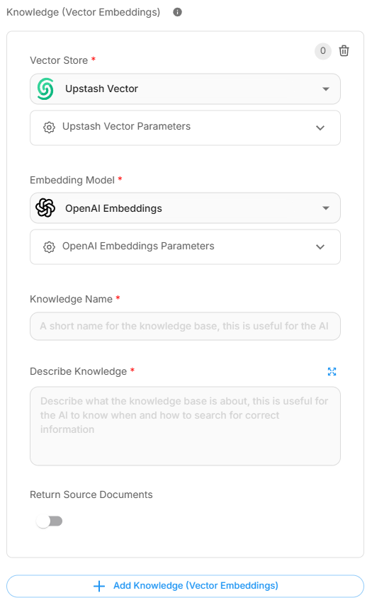 Click on the "Select Vector Store" card and choose your preferred Vector Store. In our case, as we need a production-ready option, we will select Upstash.