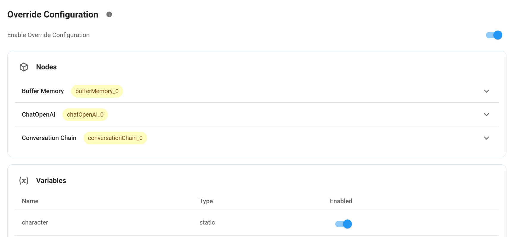 In order to override variable value, user must explicitly enable it from the top right button:
