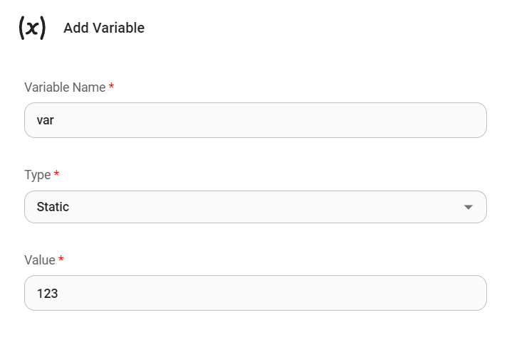CiniterFlow allow users to create variables that can be used in the nodes. Variables can be Static or Runtime.